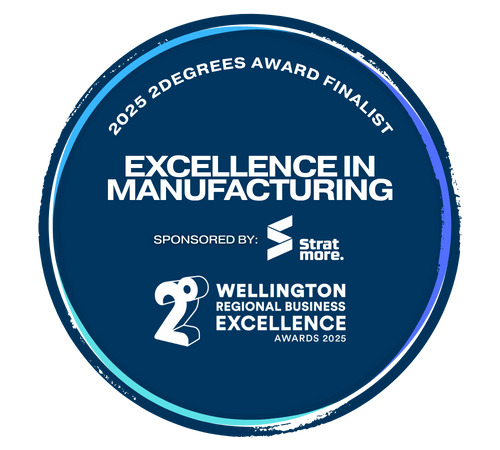 We were named as a finalist in the 2025 2Degrees Wellington Regional Business Excellence Awards, for Excellence in Manufacturing.